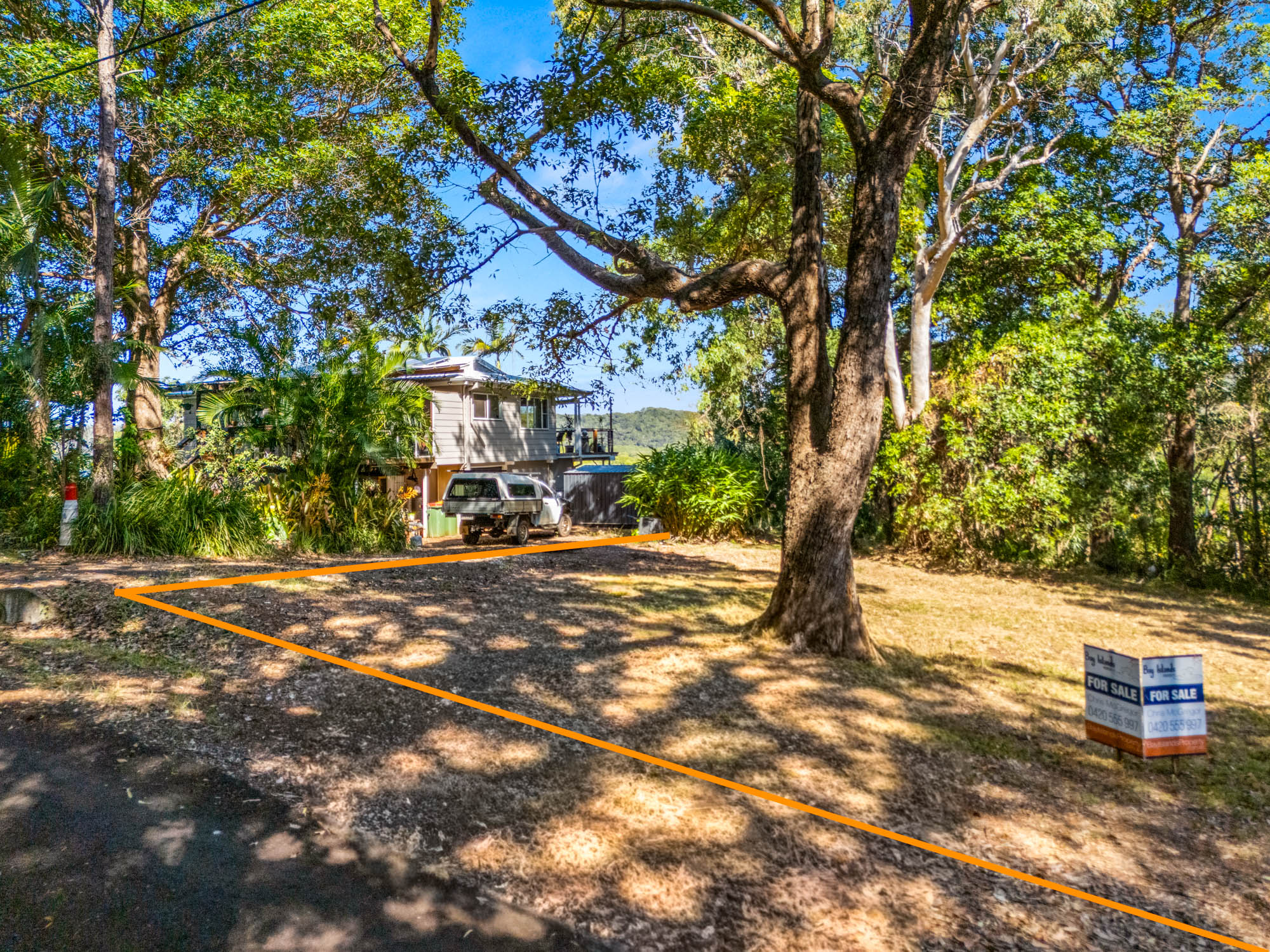 Speaking of those verandas, one can face the rainforest that leads down to the bay, whilst the other can overlook the gigantic, council-reserved land across the road (and beyond that, the other side of the bay will also be viewable). This is another unique aspect to this land, in that it is on a northern, slim part of Russell Island that has water close on each side. This land is beyond comparison and, quite simply, attributes such as this will not be found anywhere else.