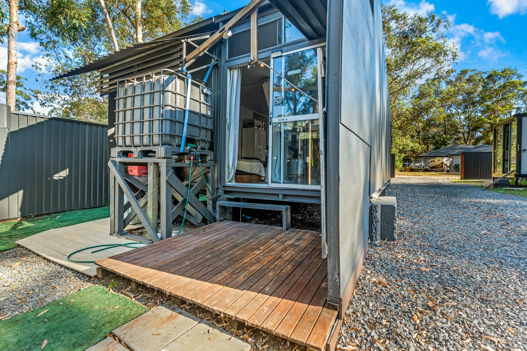 This is all about catering to that lifestyle we often dream about. You have a fully fenced, secure setup ready to live in, with power, water, and storage facilities waiting. The spare areas of the block are cleared, gravelled, weed-free and with plenty of open space for you. It can be an epic weekender, or a sustainable lifestyle choice for you and your loved ones to embrace.