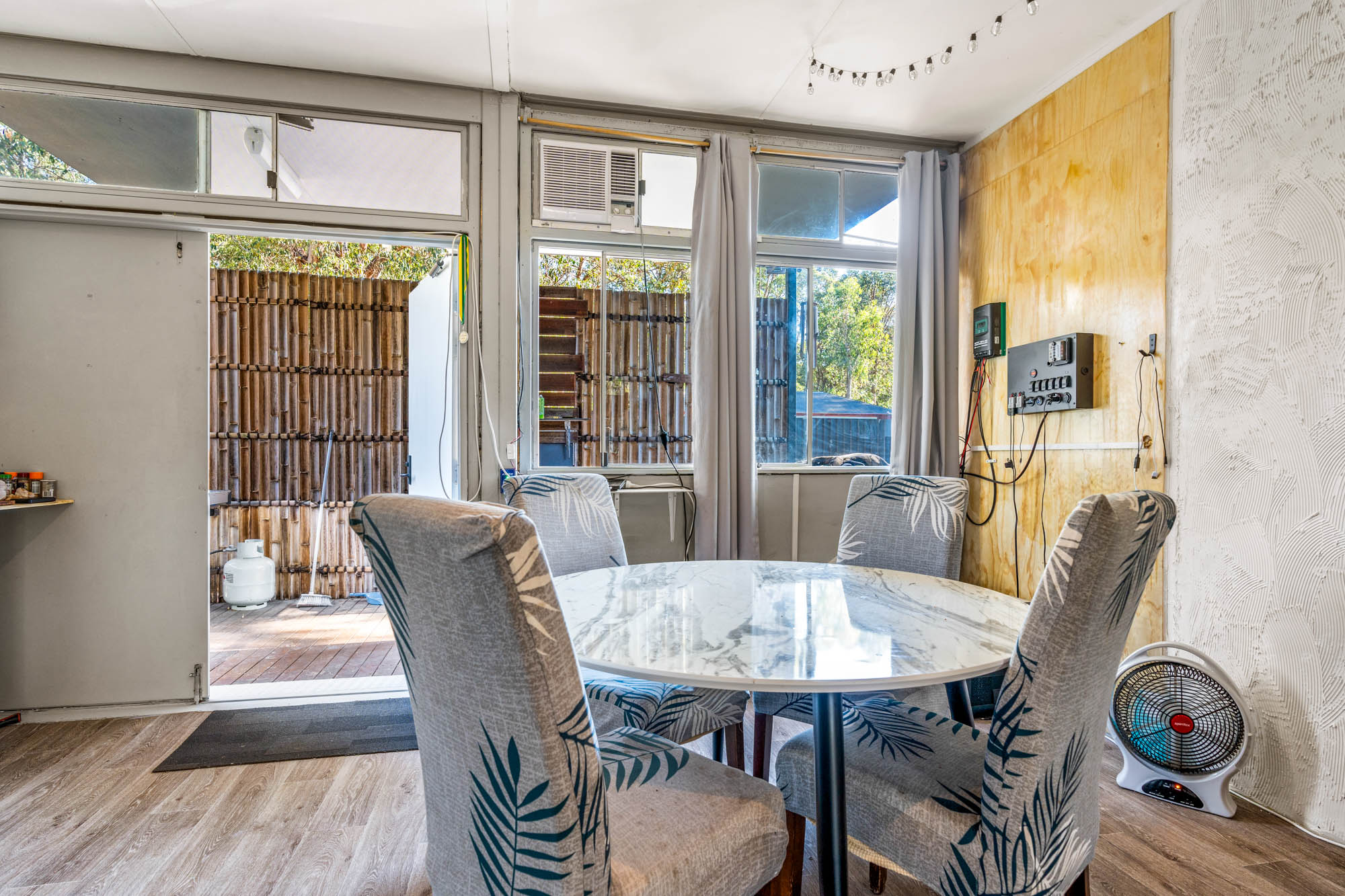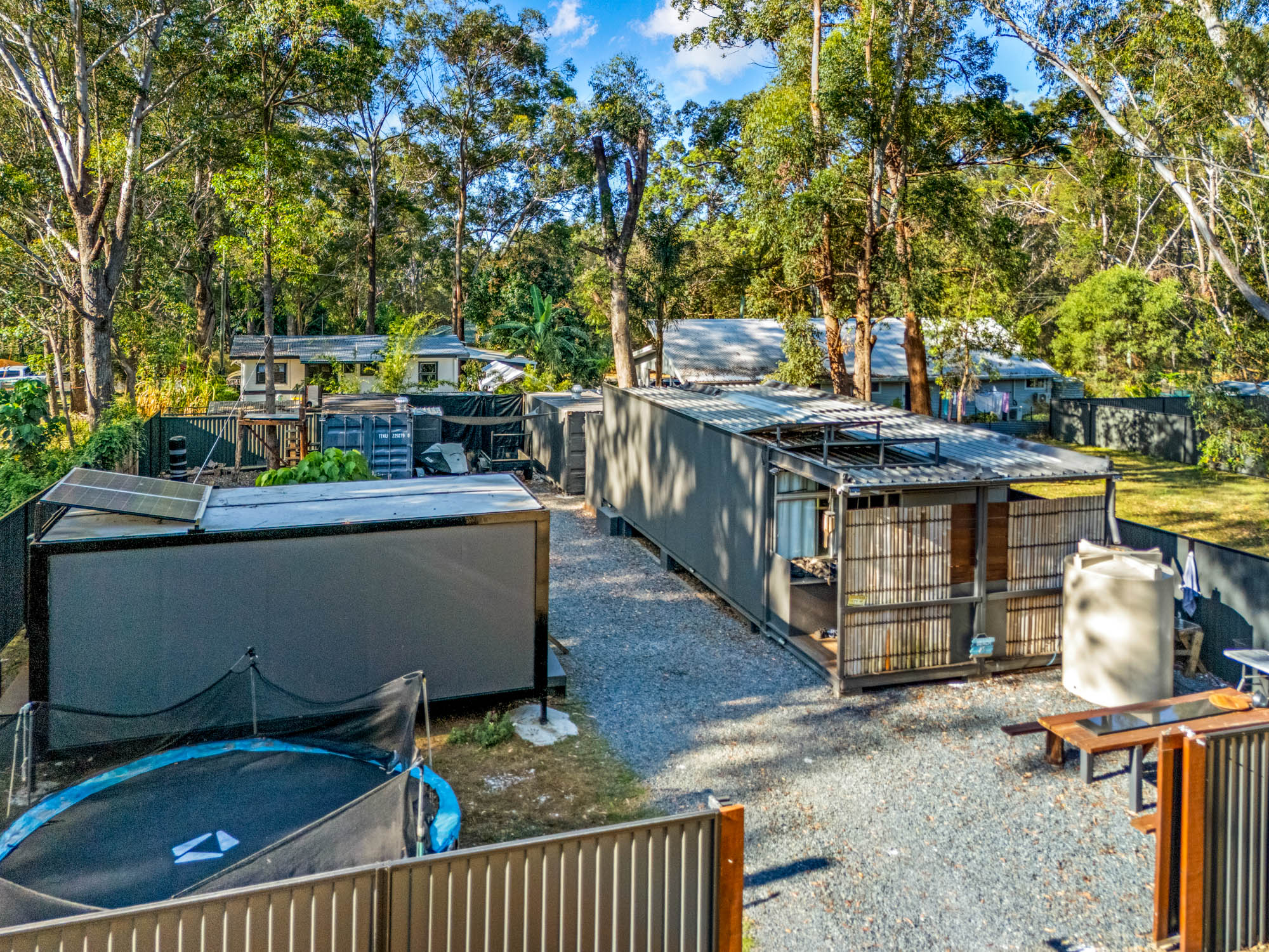 The privacy is perfect, giving the feel of a secure compound that can cater for weekends away with friends, and plenty of room for young ones to play. This is about planning and living, without the woes attributed to costly utilities. The property has power to run household items, even air-conditioning. There are water tanks with pumps, a loo and heated showers to enjoy under the stars. The raised living modules are solid, spacious and secure.