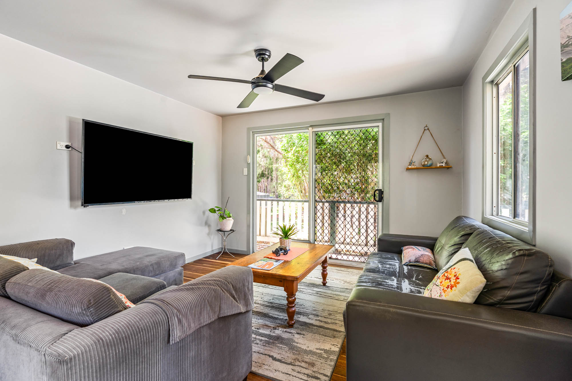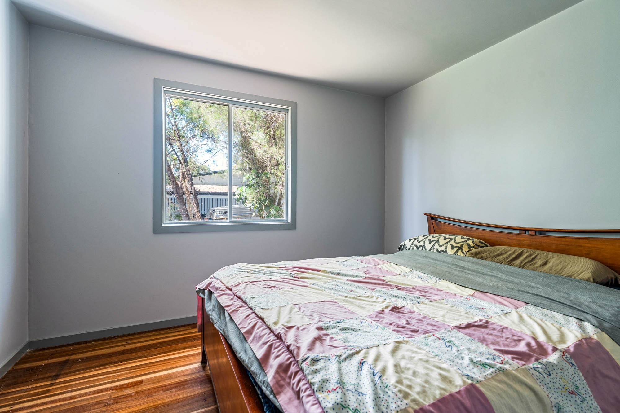 The home sits on a corner block in a perfect location. The tree-lined area is dreamy, with natural forest from the rear of the property and vacant land to one side. Its proximity is wonderful, with massive parklands less than 300 metres down the path. This is an awesome venue for zoomies, and includes a playground, cricket pitch, toilets and barbeque facilities. If you decide not to take the boat out (by the way, a boat ramp is only six minutes away), your local bowls club is only a five-minute walk. The meals, live music and friendships there make for one of our favourite island experiences.