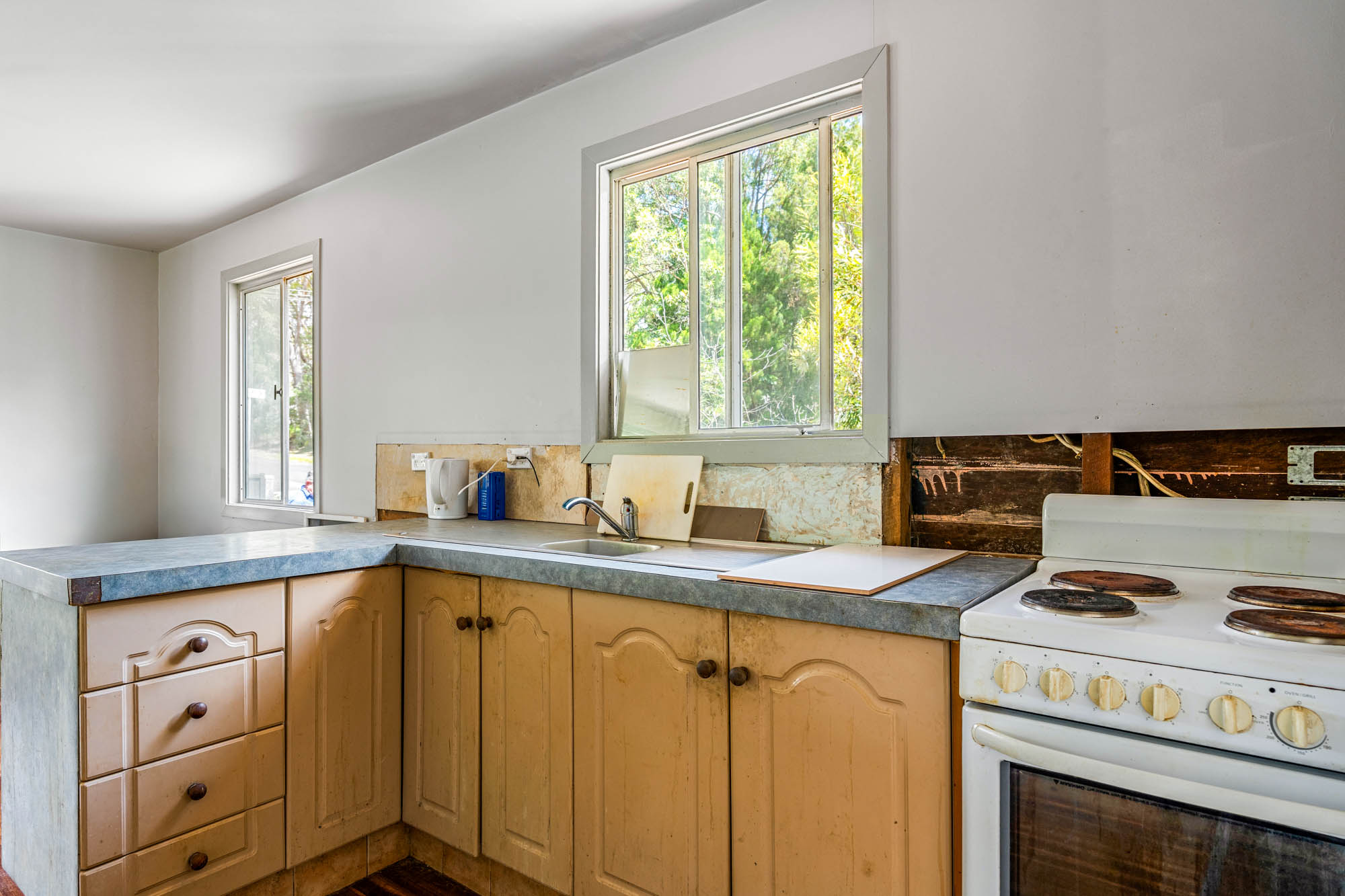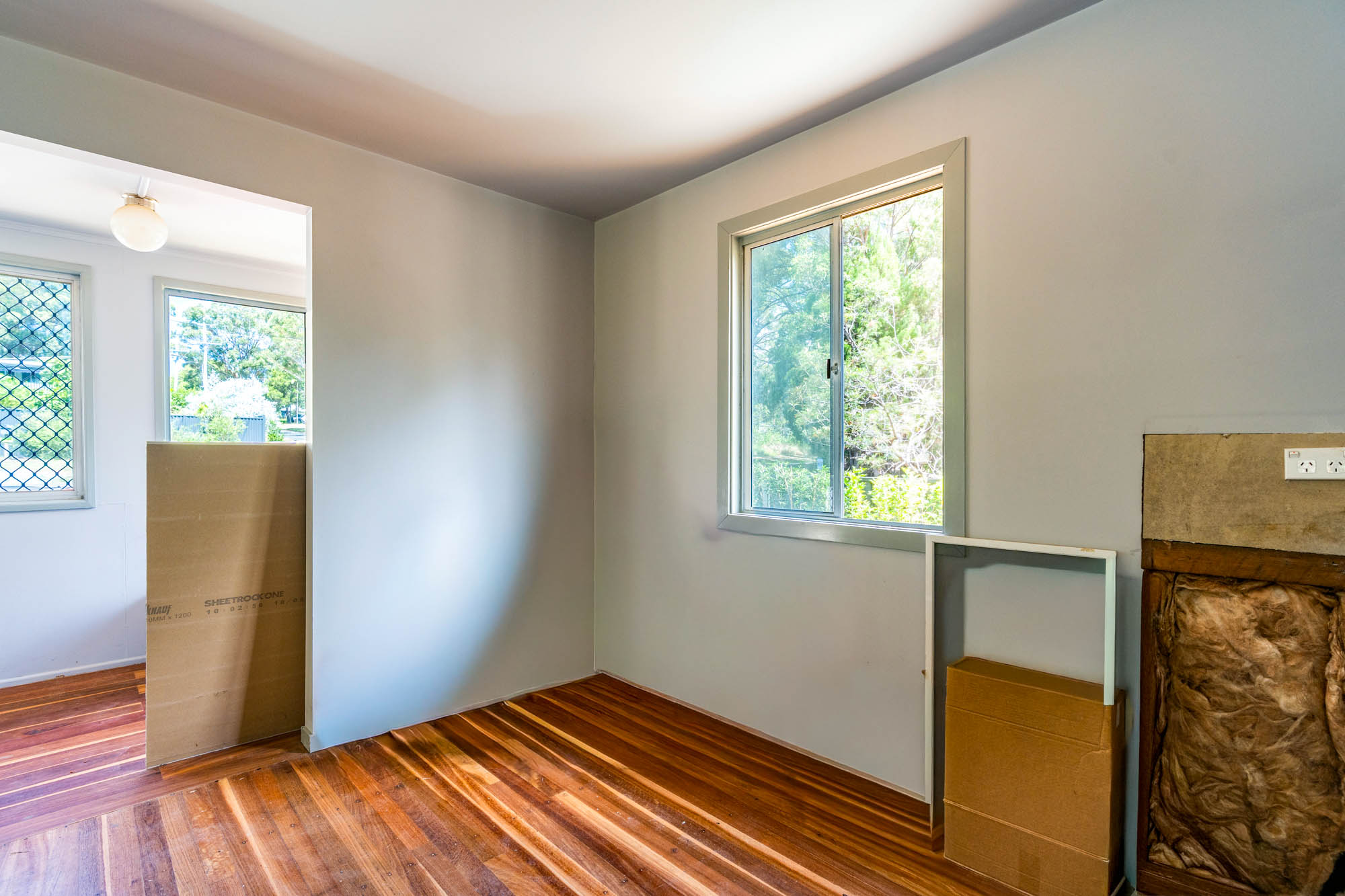 • New walls, ceilings, wiring and new flooring out the front (in the reading/sun room)