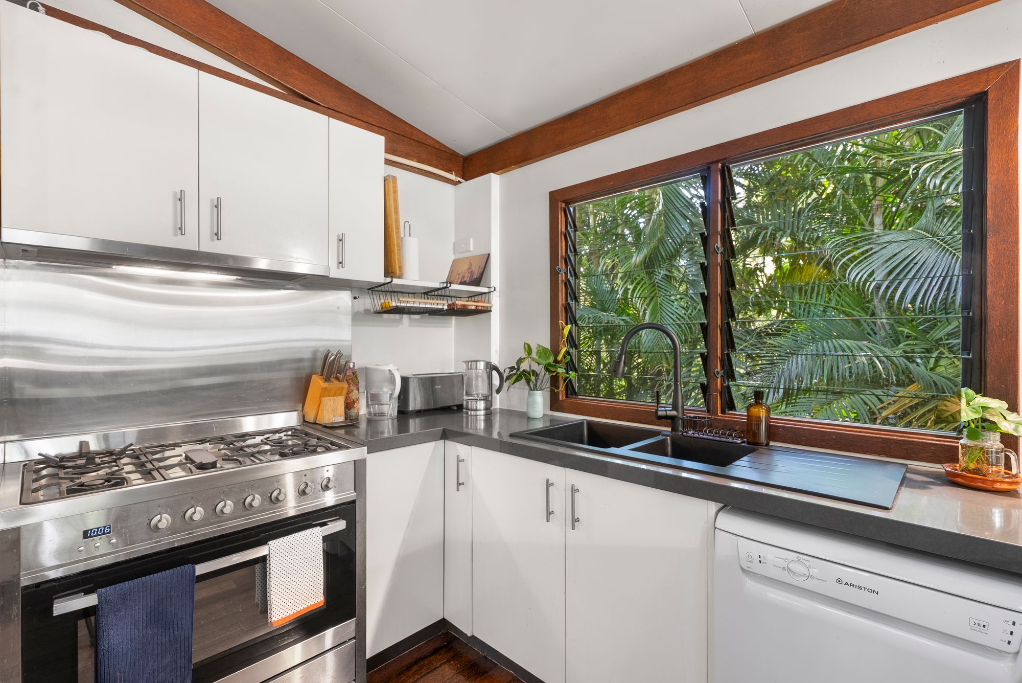 Practical extras elevate the home even further. Outside, an external laundry with bench space and additional storage makes everyday tasks easy. A second undercover zone at the rear includes a clothesline and leads to the storage shed, adding functionality alongside the covered carport at the front. A brand new 13.2kW solar system, paired with a rainwater tank, ensures sustainable, cost-efficient living. And if you’d love to move straight in, the home is also available fully furnished. From the stylish furniture to the thoughtful décor, everything has been carefully chosen to complement the relaxed island lifestyle – all you need to do is unpack your bags and start enjoying it.