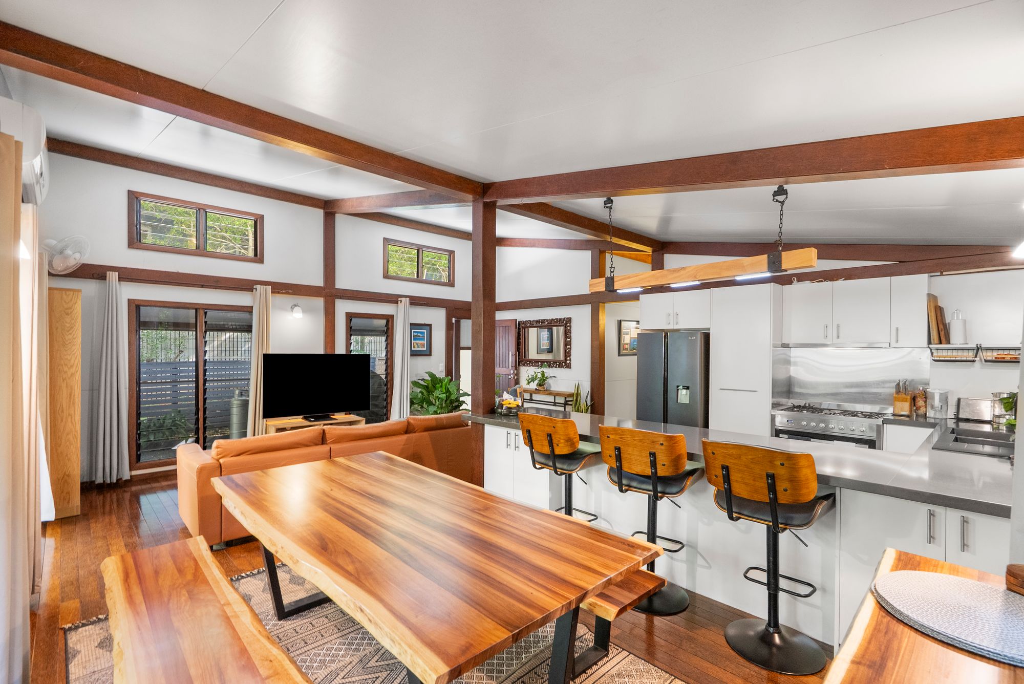 This property truly embraces island living – whether you’re swimming in your own freshwater pool, hosting friends around the firepit, or enjoying the cool breezes flowing through the light-filled interiors. Tucked away in a private corner position yet still close to island conveniences, it’s the perfect blend of lifestyle, comfort, and practicality.