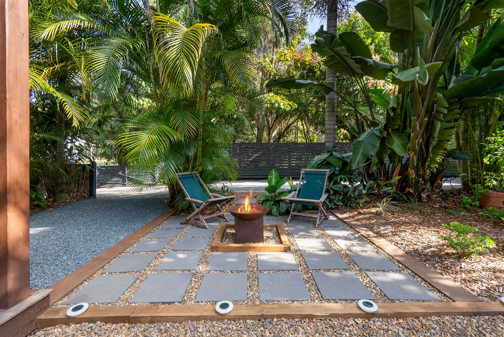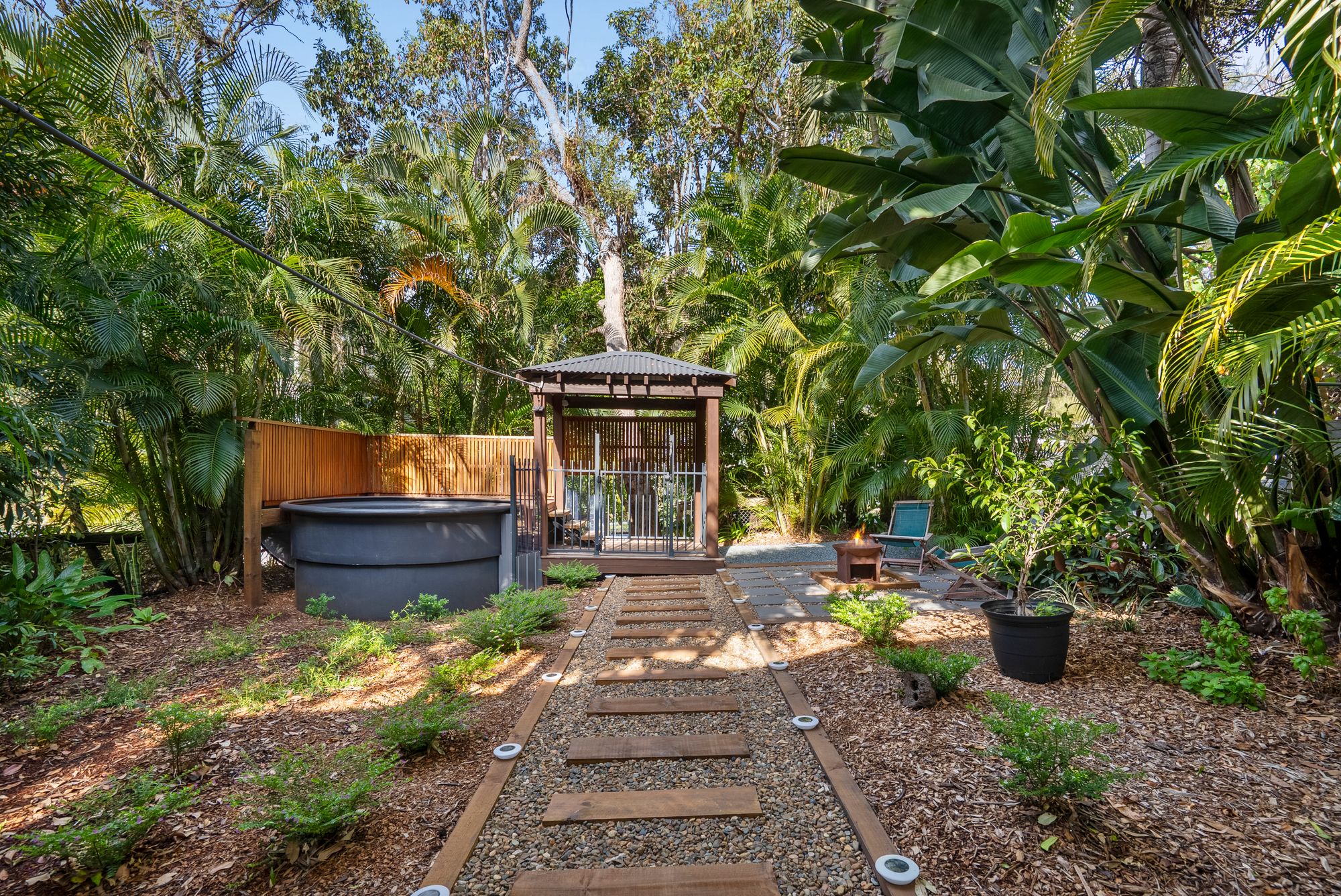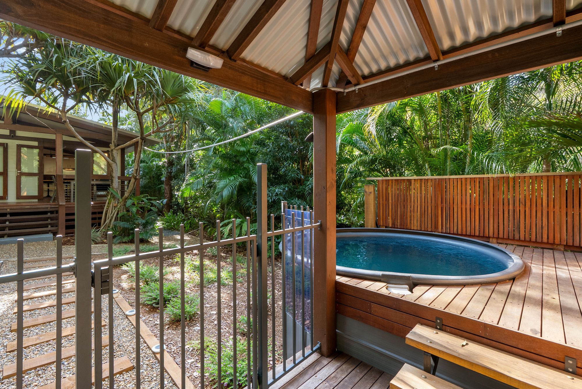 As you enter the property, your eyes are immediately drawn to the sparkling, decked plunge pool. Using a chlorine-free Bionzer freshwater system, it’s not only beautiful but also designed for easy care and healthier swimming. From there, a path leads you to the heart of the outdoor lifestyle – a dedicated firepit area, perfect for gathering with friends or unwinding under the stars on cool evenings.